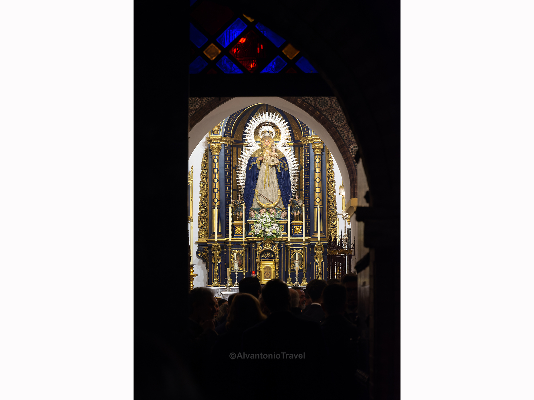Y por su fuera poco, visitaremos también otro templo: la Ermita del Valle. Edificio totalmente diferente; éste, de pura esencia mudéjar. Éste sí que es un cofrecito maravilloso donde La Palma guarda a su Patrona, la Virgen del Valle. Una de las 24 imágenes que procesionaron el pasado sábado 20 de septiembre en la procesión magna mariana de Huelva. Allí, en la capital de la provincia, miles de personas se enamoraron de ella. Igual que lo harás tú ahora, cuando la conozcas.